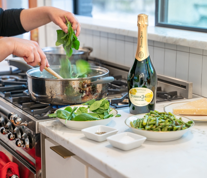 Fresh Vegetable Risotto with Sautéed Shrimp with Perrier-Jouët Grand Brut