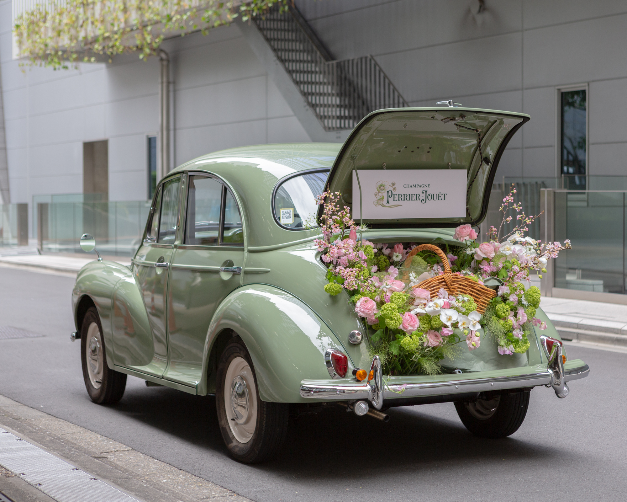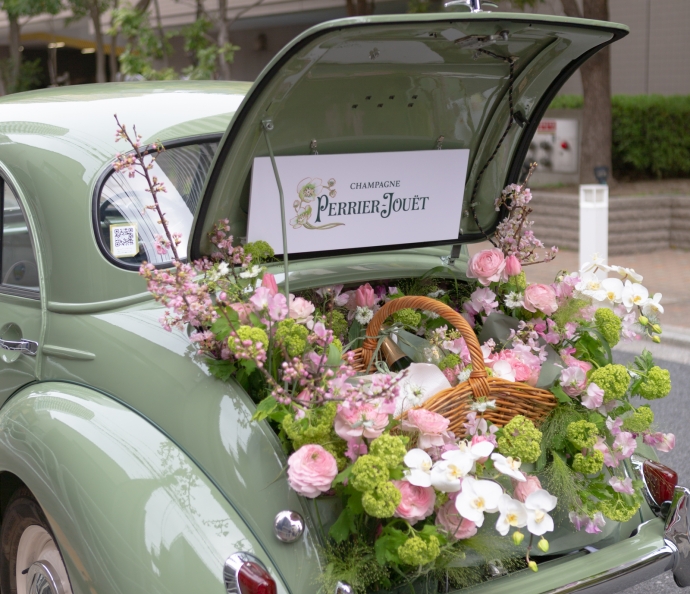 その優美さ、優雅さ、そして凛とした様から、8代目最高醸造責任者セヴリーヌ・フレルソンは新ヴィンテージであるベル エポック2013を白い蘭と関連付けています。コロナ禍により一か所に集うイベントの開催が困難な中、ペリエ ジュエから、ベル エポック新ヴィンテージを白い蘭と春の花と共に特別なギフトセットを用意しました。満開の桜の中、ペリエ ジュエのブランドカラーであるグリーンの車で、ペリエ ジュエの世界観を感じていただく演出とともにゲストへお届けし、新ヴィンテージをお披露目しました。